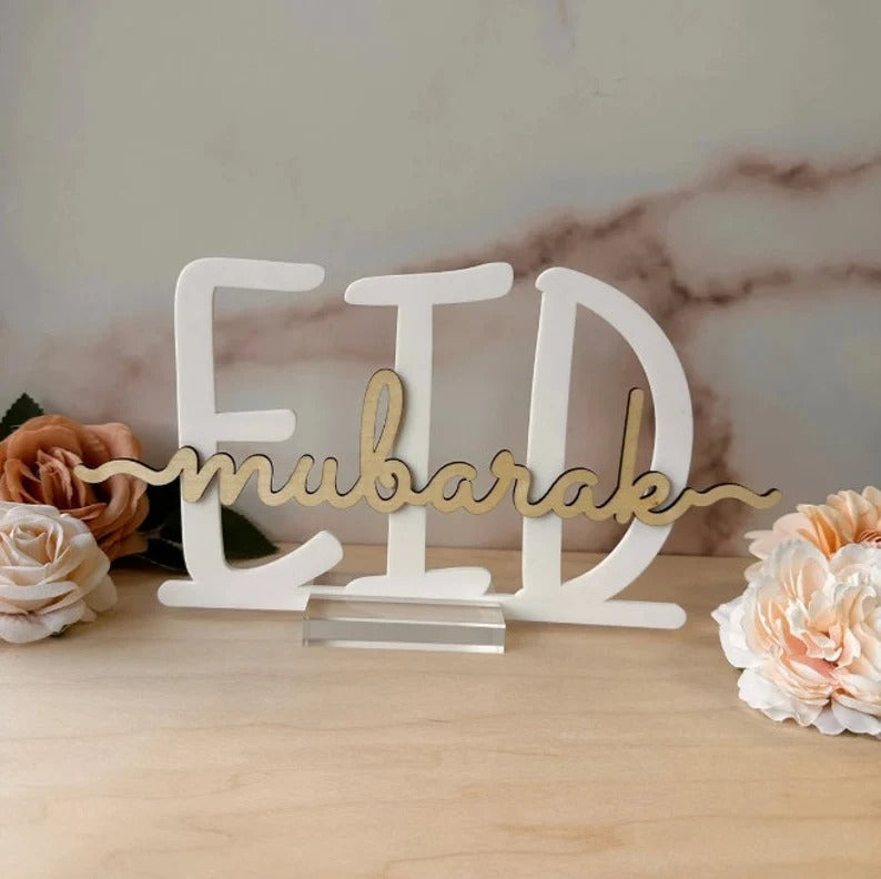 Eid Mubarak Calligraphy Decor – Wooden Islamic Table Sign